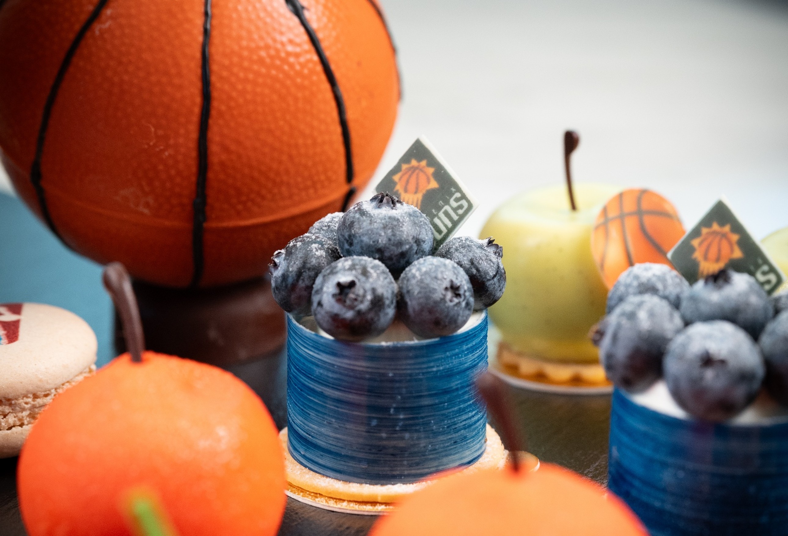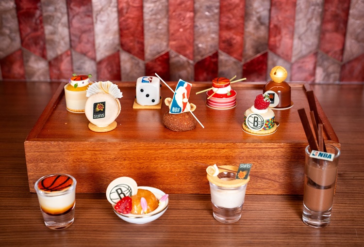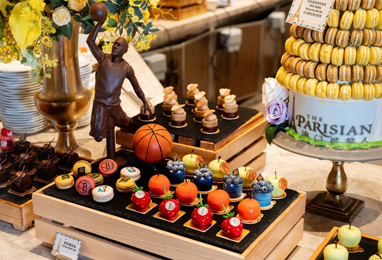 NBA主题甜品限时登陆人气自助餐,篮球主题甜点栩栩如生的球队徽标和篮球元素,为NBA中国赛2025甜蜜助威!